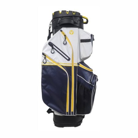 Blijf georganiseerd met een 14-voudige verdeler, puttergleuf en 12 zakken, waaronder een waterdichte zak voor waardevolle spullen en een koelvak. Ontworpen voor eenvoudig transport met meerdere handgrepen, een gevoerde riem en een stevige rubberen achterkant. Weerbestendig met verzegelde ritsen, een regenkap met rits en een parapluhouder. Met een gewicht van slechts 4,34 kg is deze cartbag lichtgewicht, maar toch boordevol functies!