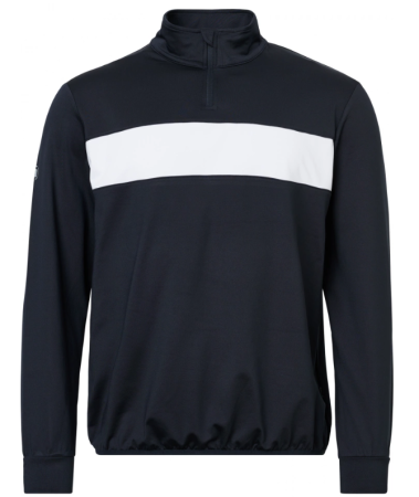 Omschrijving De Club midlayer in marineblauw biedt een klassieke, sportieve look met een wit paneel op de borst en rug. Hij is gemaakt van dun en zacht fleece, geborsteld aan de binnenkant, en heeft een col met rits, die je warm houdt op koelere dagen. De trui heeft iets bredere manchetten aan de uiteinden van de mouwen en een smalle elastische rand aan de onderkant. De Drycool-functie zorgt voor een goed ademend vermogen en comfort, zowel op als naast de baan. Gebruik hem als warmer, zowel buiten als binnen.