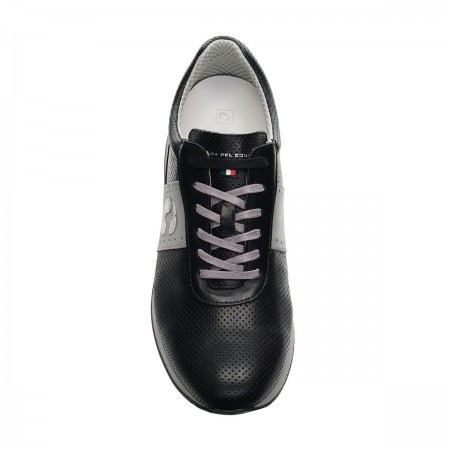 Omschrijving Met de enige echte Belair golfschoen maak jij je actieve, modebewuste look helemaal compleet. Deze schoen is gemaakt van zacht, geperforeerd nappa leer en voorzien van waxveters in twee verschillende kleuren, zodat je je look kunt afwisselen, afhankelijk van je stemming. Dankzij het ademende interne bootiesysteem en de binnenzool van traagschuim en leer blijven je voeten overal en altijd droog en comfortabel. De Belair is voorzien van Duca's Airplay VI buitenzool, die functionaliteit combineert met pasvorm. De verhoogde hiel, beschermende teenbumper en 5 mm noppen houden je stabiel tijdens je swing; de perfecte houding voor die winnende slag.